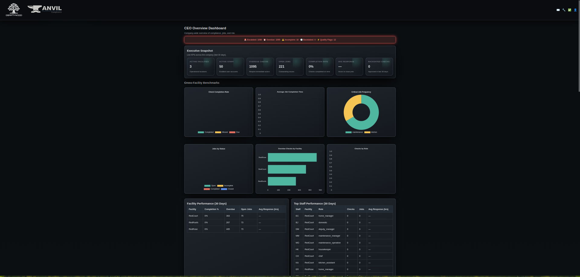 - Live Operational Dashboards: Real-time view of compliance status across every facility you manage