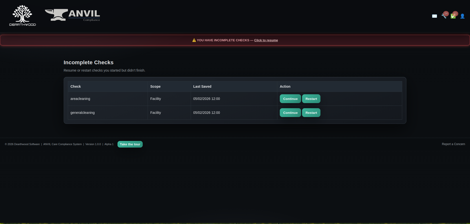 Project Anvil is purpose-built to modernise compliance management across care homes, public buildings, and hospitality venues. We’re eliminating the chaos of paper trails, fragmented systems, and reactive compliance culture. Instead, you get a single, intelligent platform that transforms regulatory requirements from operational burden into competitive advantage.